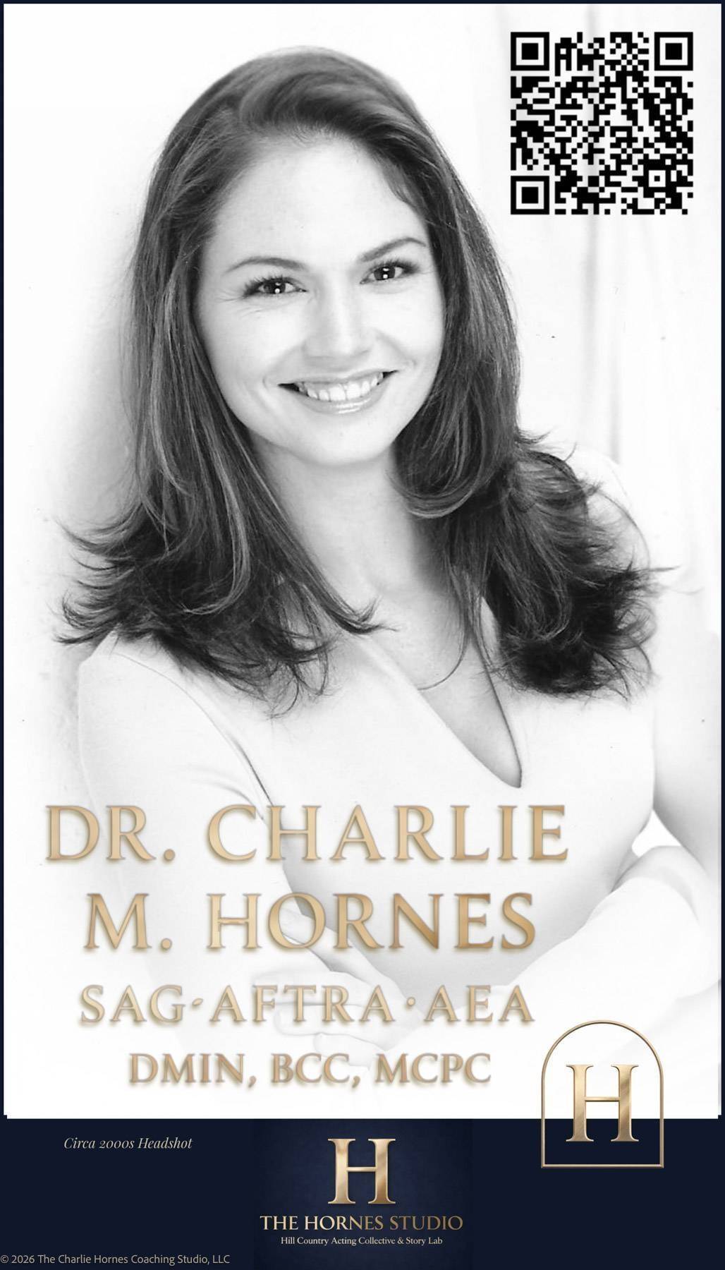 Dr. Charlie M. Hornes is a conservatory-trained, union-credentialed actor with a professional career spanning New York City, Miami, and major studio productions. She earned her BFA in Acting from Marymount Manhattan College, training in the Stanislavski, Meisner, Strasberg, and Stella Adler techniques under master teachers Rod McLucas, Richard Niles, Adrienne Williams, Bill Bordeaux, and Pat Hoag Simon (NY Times theatre critic Charles Simon’s wife and longtime Jean Cocteau Rep artist). Trained in the Stella Adler technique through the Jean Cocteau Repertory, under master teacher Rod McLucas, whose classic NYC repertory company shaped generations of New York actors in classical and contemporary performance.